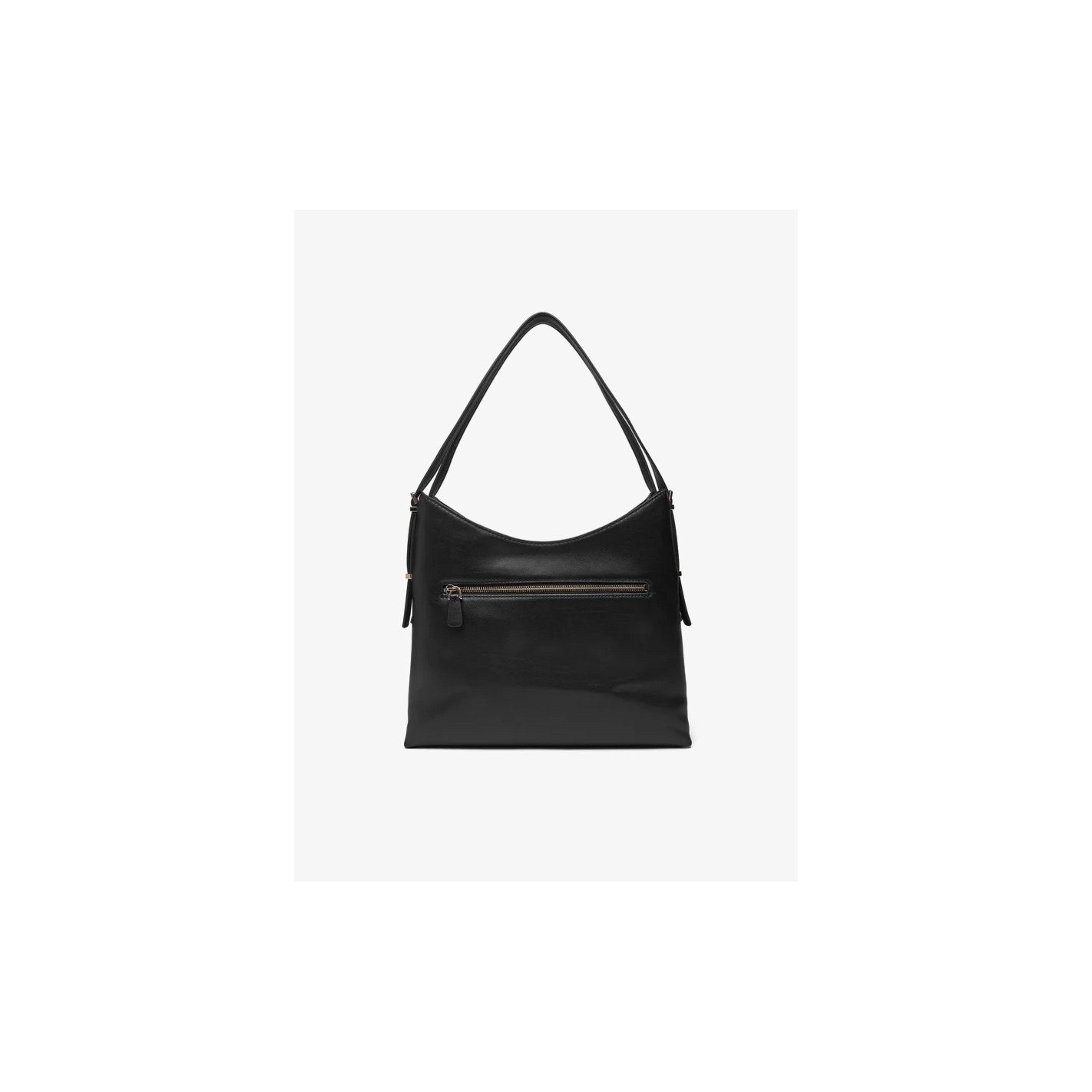 Tres compartimentos, central con cremallera y dos laterales con solapa y magnético, bolsillos internos.