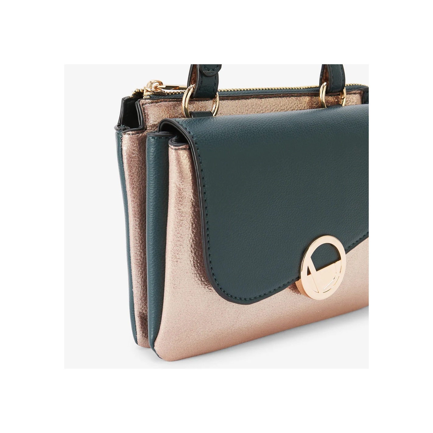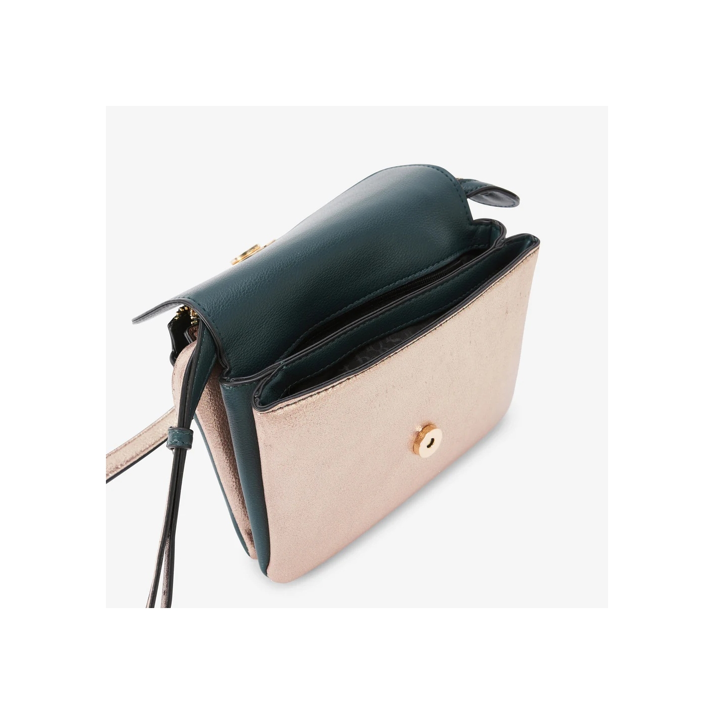 Bolso bicolor con correa larga, ajustable y extraíble.