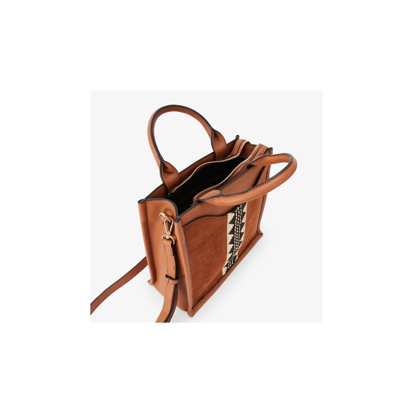 Bolso en bimaterial con efecto antelina y banda