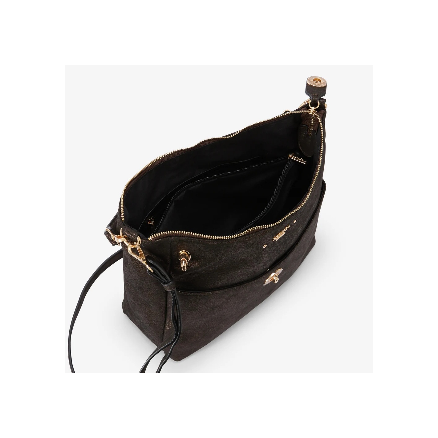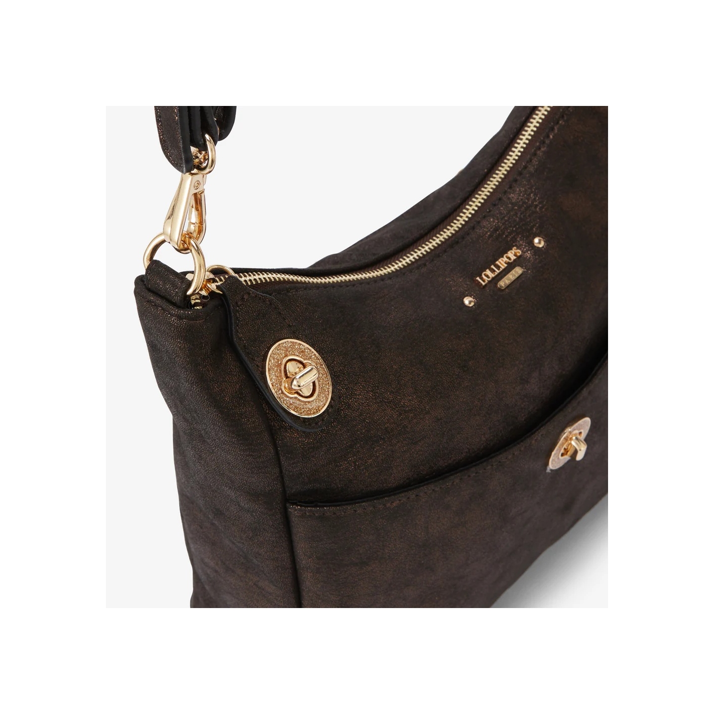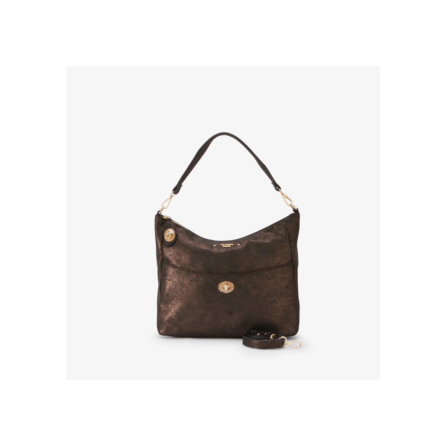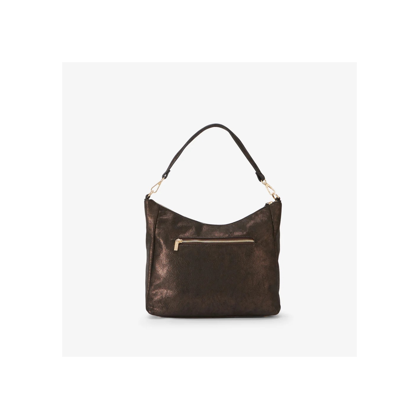 Bolso estilo hobo en tejido marrón chocolate iridiscente.