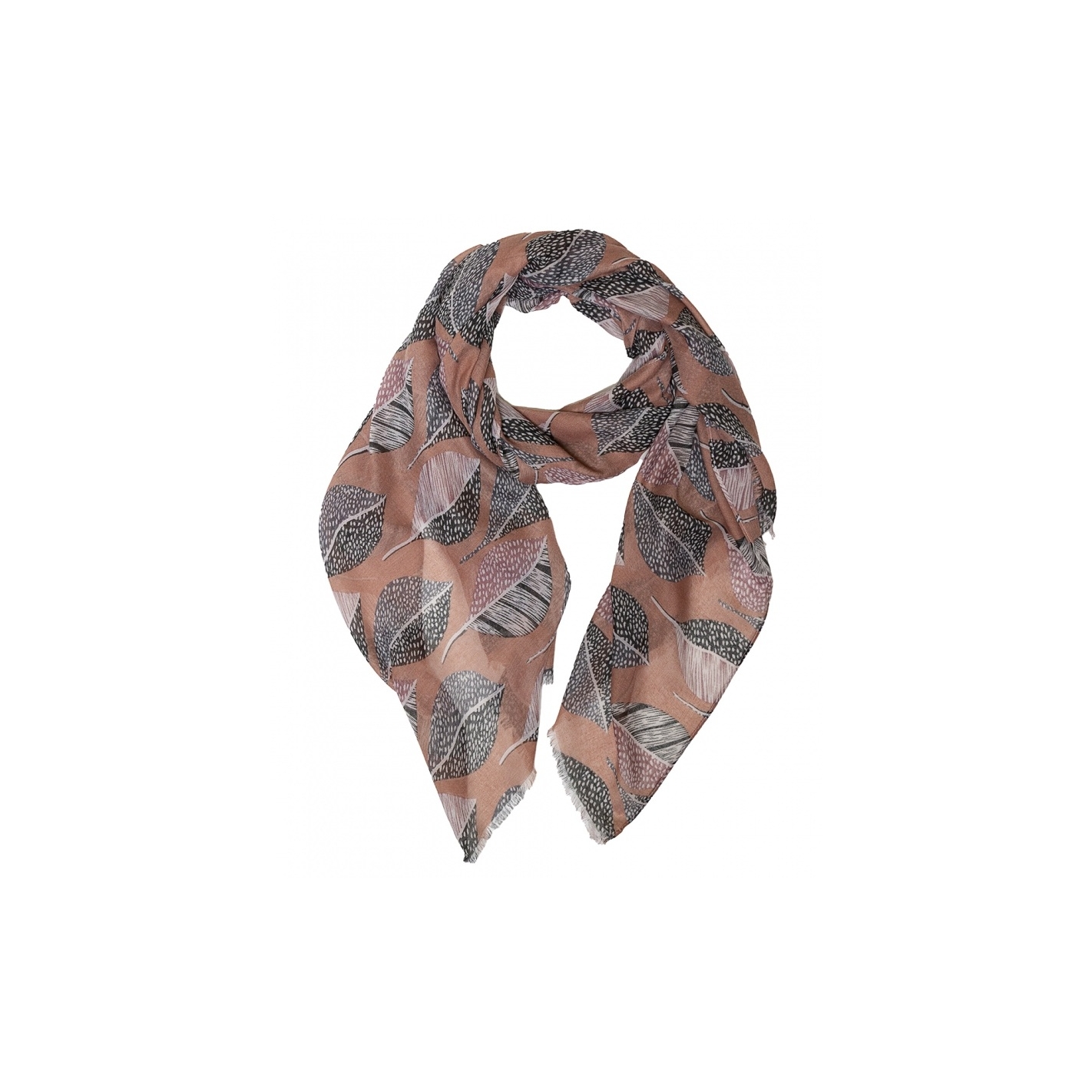 Foulard con dos lados de flecos, dibujo de hojas