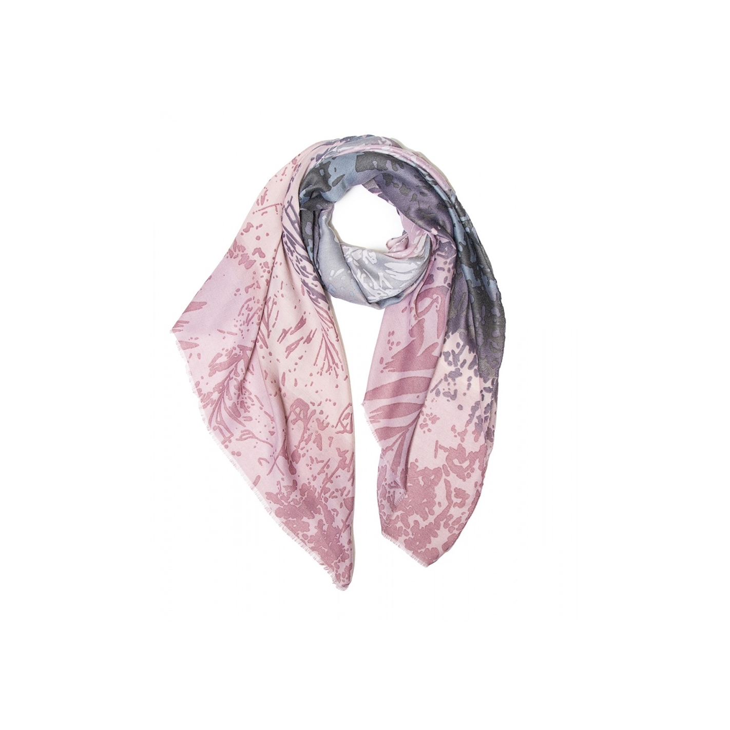Foulard con dos lados de flecos, dibujo vegetal abstracto