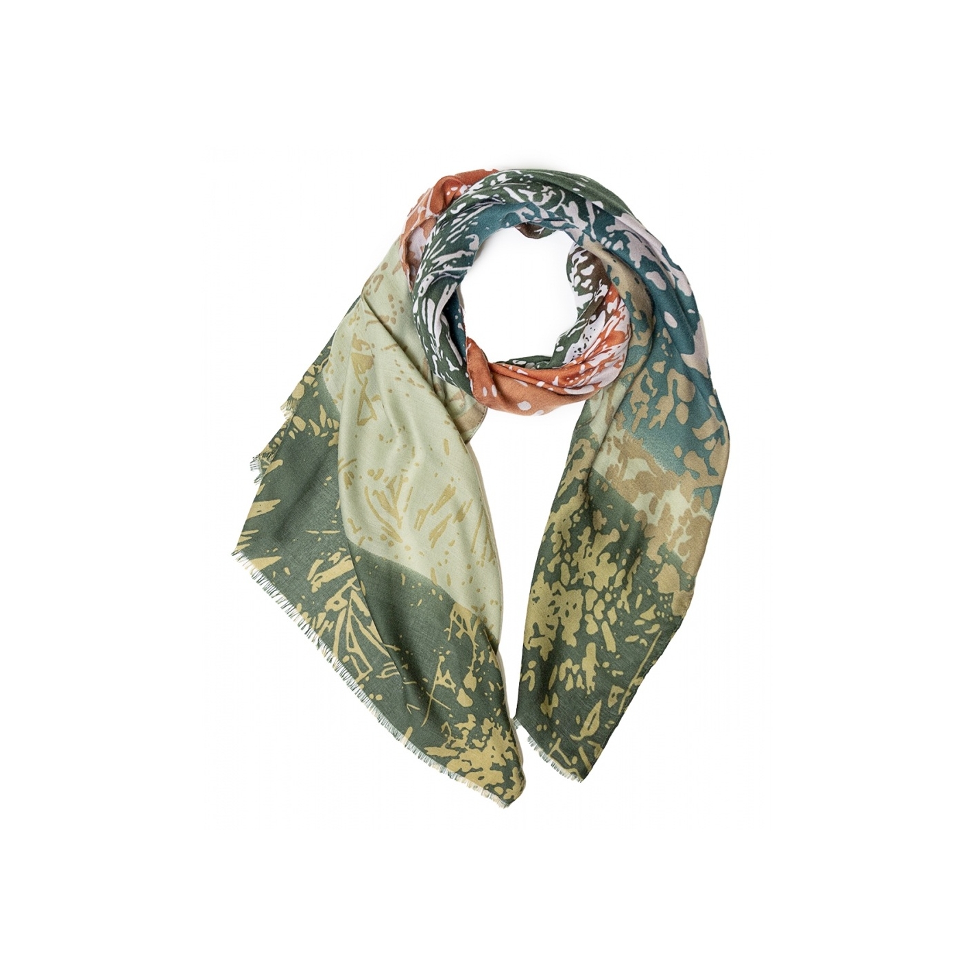 Foulard con dos lados de flecos, dibujo vegetal abstracto