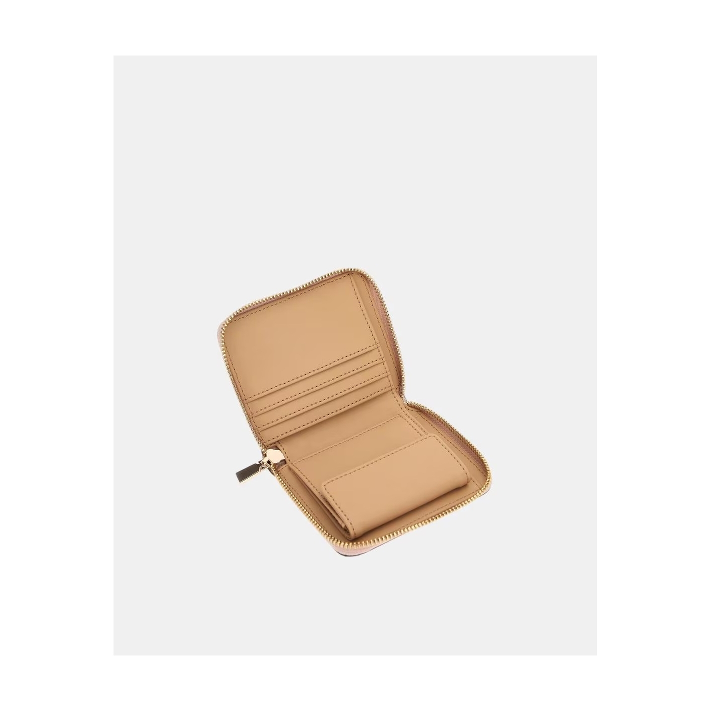 Elementos metálicos color dorado pálido.